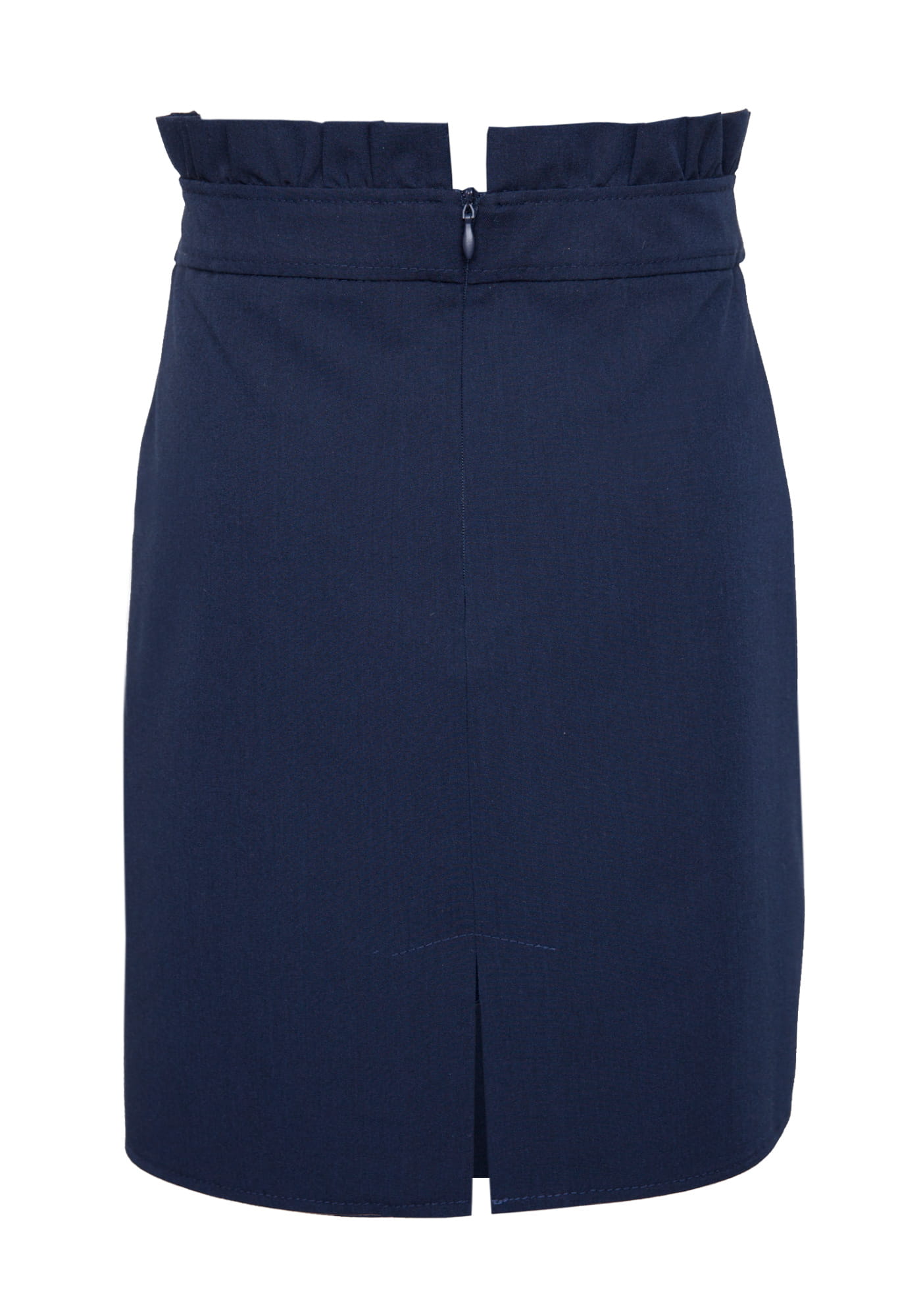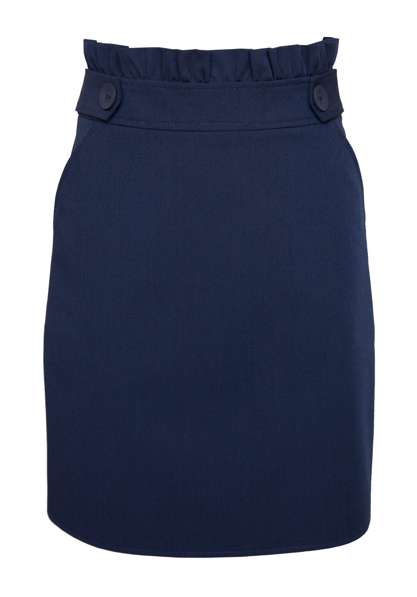 Piękna spódnica w kolorze granatowym, z kieszeniami. Na linii pasa udekorowana guzikami. Idealna na uroczystości szkolne, urodziny i inne ważne momenty w życiu dziewczynki. Długość sięgająca do kolan.
